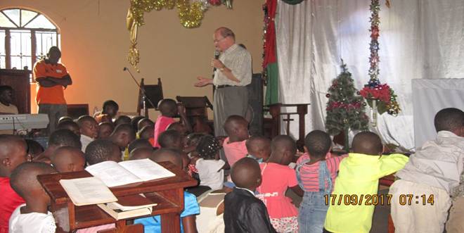 Pastor Ernest dedicating Children to God during a Sunday service at St. James Anglican Church
