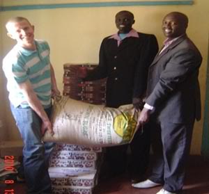 Nathaniel presenting gifts of Sugar, Soap and Bibles to the Pastors in Charge of prison ministry